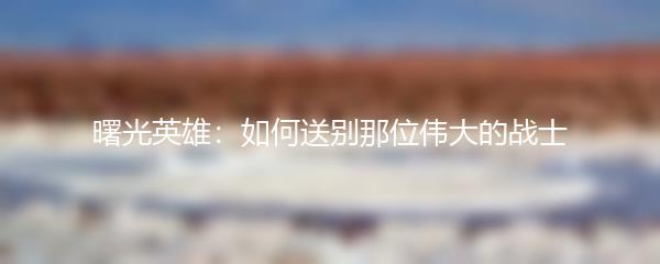 以上就是为大家带来的"曙光英雄:如何送别那位伟大的战士"。