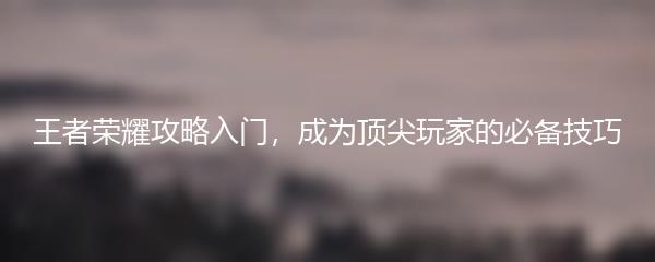 以上就是为大家带来的王者荣耀攻略入门,希望这些技巧可以帮助玩家提升自己的游戏水平,成为顶尖玩家!