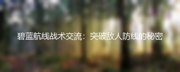 碧蓝航线战术交流:突破敌人防线的秘密