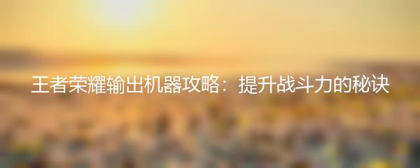 以上就是为大家带来的王者荣耀输出机器攻略:提升战斗力的秘诀。希望这些攻略能帮助到您,在游戏中取得更多的胜利!