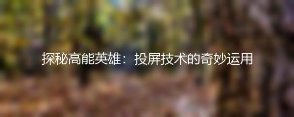 当今数字时代,高能英雄们的故事一直激励着我们向前方。而投屏技术的出现,让观看他们的故事更为生动。