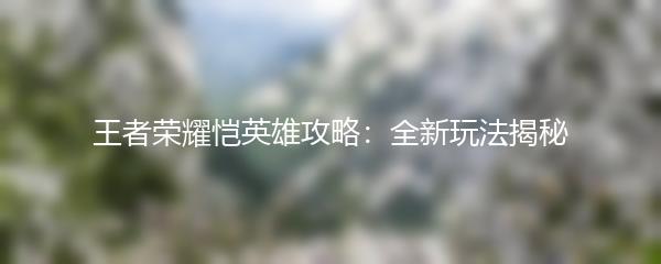王者荣耀恺英雄攻略:全新玩法揭秘