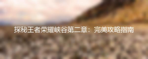 以上就是为大家带来的探秘王者荣耀峡谷第二章:完美攻略指南,希望对各位玩家有所帮助。在王者的世界里,不断学习和提升才能成为真正的王者!