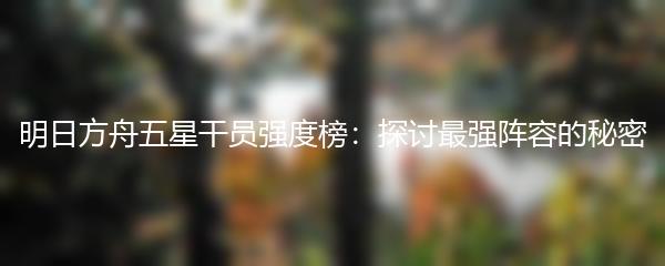 明日方舟五星干员强度榜:探讨最强阵容的秘密