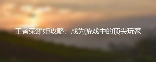 以上就是为大家带来的王者荣耀姫攻略:成为游戏中的顶尖玩家