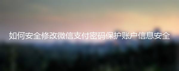随着互联网的发展和普及,微信支付已经成为人们日常生活中不可或缺的支付工具之一。然而,随之而来的安全问题也日益突出,如何保护账户信息的安全成为了人们关注的焦点之一。在这种情况下,如何安全修改微信支付密码就显得尤为重要。