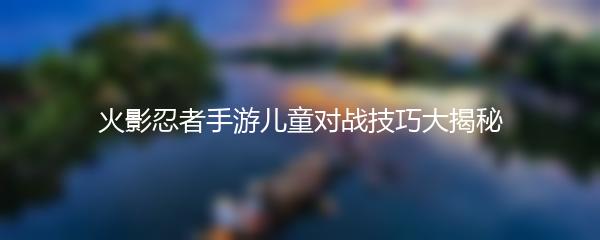 以上就是为大家带来的“火影忍者手游儿童对战技巧大揭秘”。