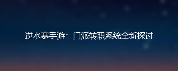 逆水寒手游:门派转职系统全新探讨