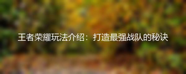 王者荣耀玩法介绍:打造最强战队的秘诀