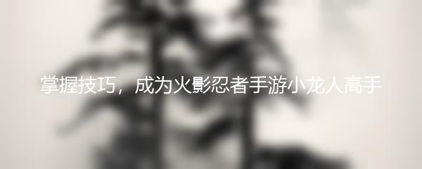 以上就是为大家带来的掌握技巧,成为火影忍者手游小龙人高手。
