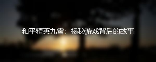 以上就是为大家带来的《和平精英九霄:揭秘游戏背后的故事》。