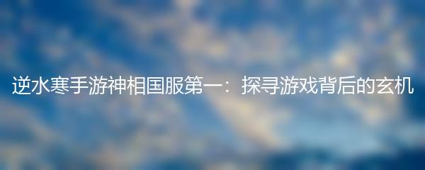 逆水寒手游神相国服第一:探寻游戏背后的玄机