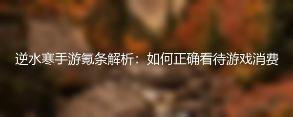 逆水寒手游氪条解析:如何正确看待游戏消费