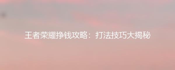 王者荣耀挣钱攻略:打法技巧大揭秘