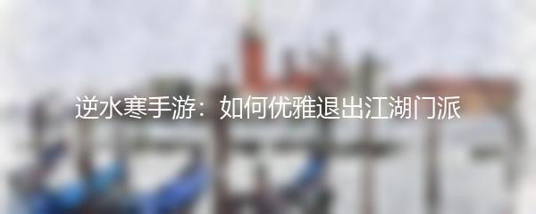以上就是为大家带来的“逆水寒手游:如何优雅退出江湖门派”
