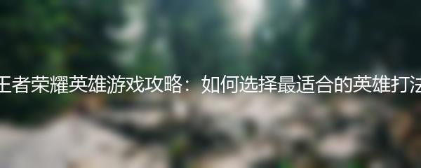 王者荣耀英雄游戏攻略:如何选择最适合的英雄打法