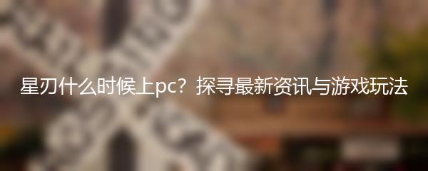星刃什么时候上pc?探寻最新资讯与游戏玩法