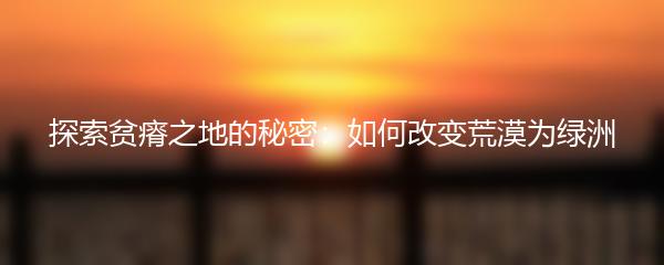 在我们生活的世界中,有许多被称为贫瘠之地的地方,常常给我们一种无法改变的印象。然而,正是因为这种印象,我们更需要探索贫瘠之地的秘密,找到改变荒漠为绿洲的方法。