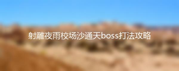 以上就是为大家带来的射雕夜雨校场沙通天boss打法攻略,希望对大家在游戏中遇到Boss时有所帮助。