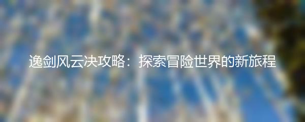 逸剑风云决攻略:探索冒险世界的新旅程
