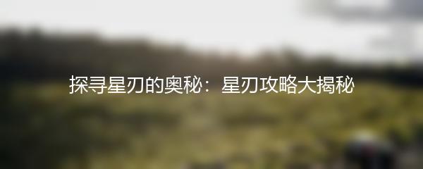 星刃,作为一款备受瞩目的游戏,吸引了无数玩家的关注和热爱。其中蕴含着许多不为人知的奥秘和技巧,想要在游戏中脱颖而出,就必须掌握星刃的攻略。