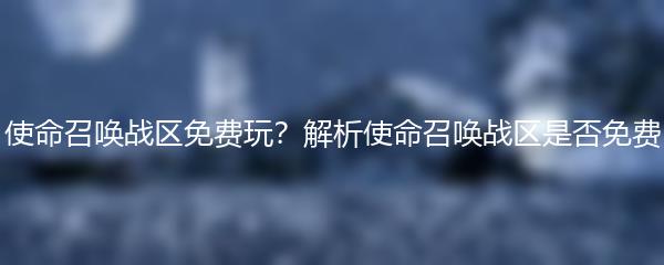 使命召唤战区免费玩?解析使命召唤战区是否免费
