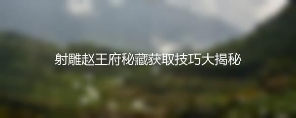 射雕赵王府秘藏是一部经典武侠小说,其中蕴含着许多宝贵的武学秘笈。许多人都想一窥这些珍贵的藏书,但获取之路并不容易。今天就让我们揭秘一下射雕赵王府秘藏的获取技巧。