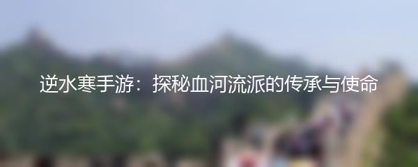 以上就是为大家带来的"逆水寒手游:探秘血河流派的传承与使命"。