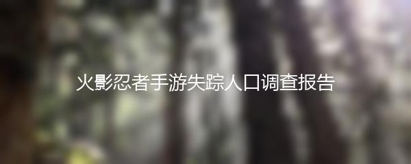 以上就是为大家带来的火影忍者手游失踪人口调查报告,让我们一起关注并解决这个难题。