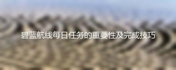 以上就是为大家带来的碧蓝航线每日任务的重要性及完成技巧,希望对大家有所帮助。