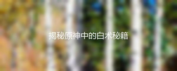 原神中的白术一直备受玩家关注,究竟隐藏着哪些秘密?今天我们将揭开这个神秘的面纱,向你展示原神中白术的真正力量。