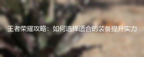 以上就是为大家带来的王者荣耀攻略:如何选择适合的装备提升实力。
