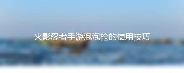 火影忍者手游泡泡枪的使用技巧