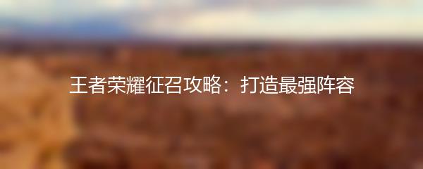 王者荣耀是一款风靡全球的多人在线对战游戏,拥有丰富的英雄角色供玩家选择。在游戏初期征召阶段,选择一个合适的阵容至关重要。本文将介绍如何利用王者荣耀征召攻略,打造最强阵容。