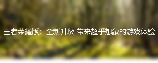 王者荣耀版:全新升级 带来超乎想象的游戏体验