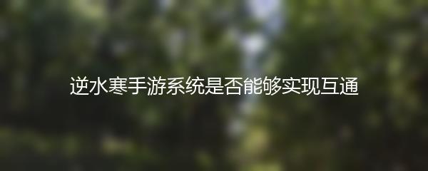 逆水寒手游系统是否能够实现互通