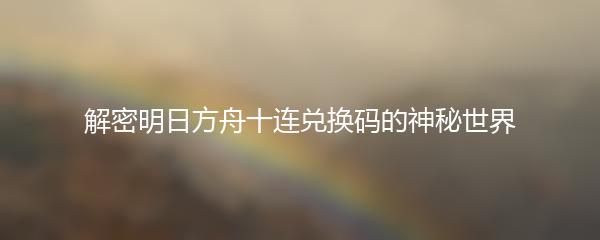 以上就是为大家带来的解密明日方舟十连兑换码的神秘世界,希望能帮助到各位玩家更好地理解和利用这一特殊福利。