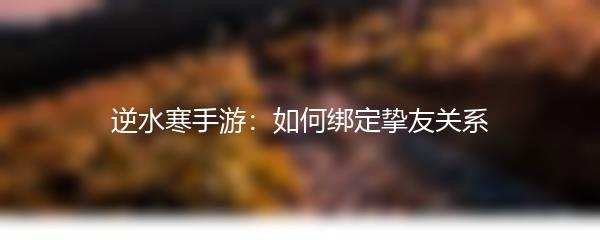 逆水寒手游是一款备受玩家喜爱的游戏,其中挚友关系的建立对于游戏体验来说非常重要。如何绑定挚友关系?本文将为大家详细介绍。