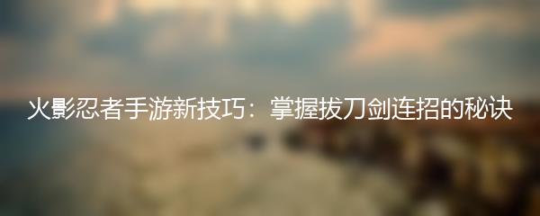 火影忍者手游新技巧:掌握拔刀剑连招的秘诀