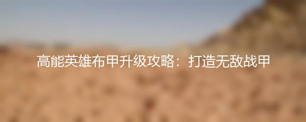 在《高能英雄》这款热门游戏中,布甲是一种非常关键的装备,能够大幅提升英雄的防御能力。但是,如何升级布甲,打造一套无敌的战甲呢?下面就让我们来一起探讨一下。