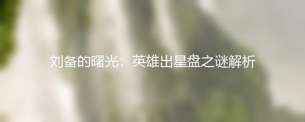 刘备的曙光:英雄出星盘之谜解析