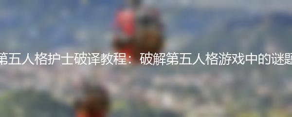 第五人格护士破译教程:破解第五人格游戏中的谜题
