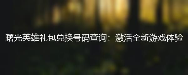 曙光英雄礼包兑换号码查询:激活全新游戏体验
