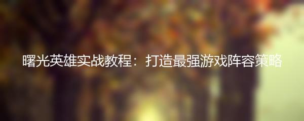 以上就是为大家带来的曙光英雄实战教程:打造最强游戏阵容策略。