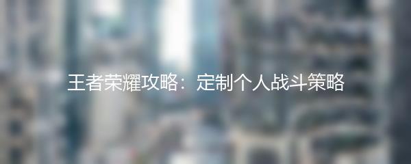 王者荣耀攻略:定制个人战斗策略