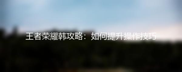王者荣耀韩攻略:如何提升操作技巧