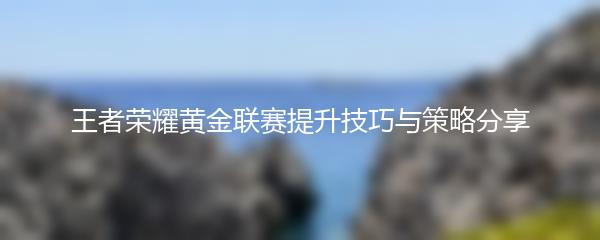以上就是为大家带来的王者荣耀黄金联赛提升技巧与策略分享。