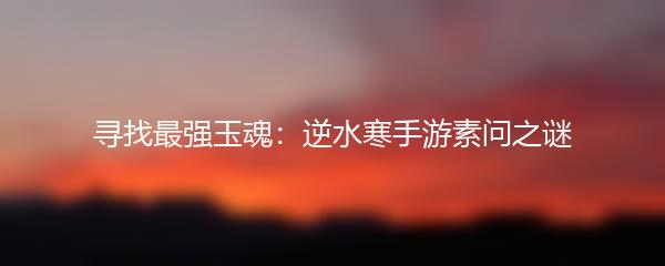 寻找最强玉魂:逆水寒手游素问之谜