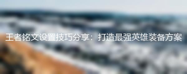 王者铭文设置技巧分享:打造最强英雄装备方案