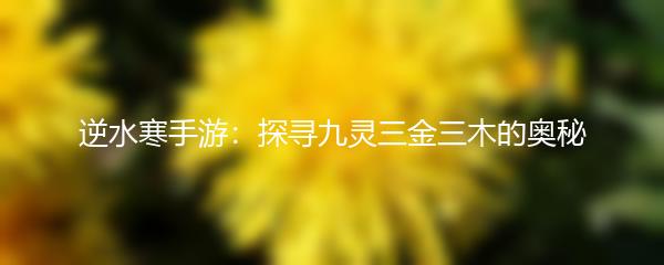 逆水寒手游是一款备受瞩目的游戏,在游戏中有着许多神秘的元素,而其中九灵三金三木更是令人神往。探寻九灵三金三木的奥秘,将带你踏上一段惊险刺激的冒险之旅。